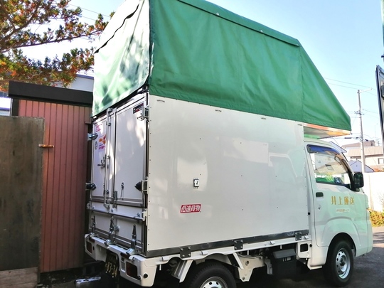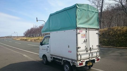 ↑↑貨物室です。運転席真上のスペースを除き、5.2立方メートルの容積です。高さ2.1m、幅1.4m、奥行き1.8mです。運転席真上のスペースと合わせて5.9㎥です。ベッドマットは立てて積めます。