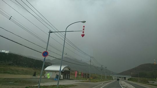 帰り道の富良野市郊外 ここも黄砂で、モヤッとしてました。