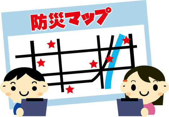 防災マップで居住地域の避難場所も確認して災害時、家族との集合場所を最低限決めておきたいものです。携帯も使えるかどうかわかりません。