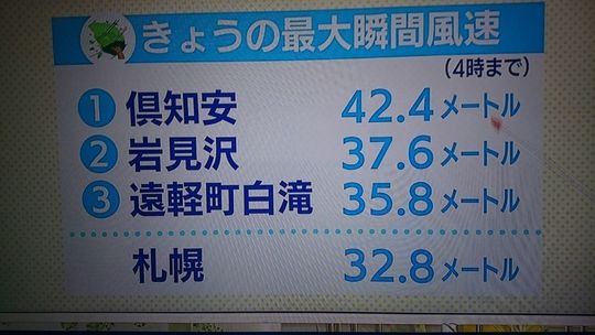 昨夜から未明にかけ北海道も超大型台風21号の暴風域に入り各地で被害が出ています。台風は北上し温帯低気圧に変わる見込みですが、まだ札幌では風が強い状況です。引き続きご注意ください。