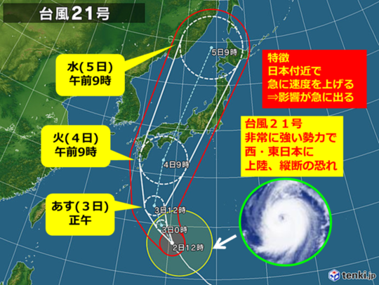台風21号が北上して、5日頃北海道に接近するようです。風が強まりそうですので飛ばされそうな物はかたずけてしまいましょう。また飛来物にもお気を付けください。
