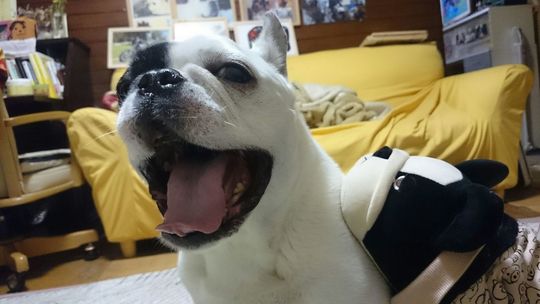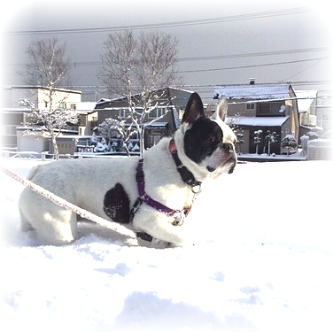 看板犬の”れん”は画像では難しい顔してますが雪が大好きで駆け回っていたのに、ちょっと残念!